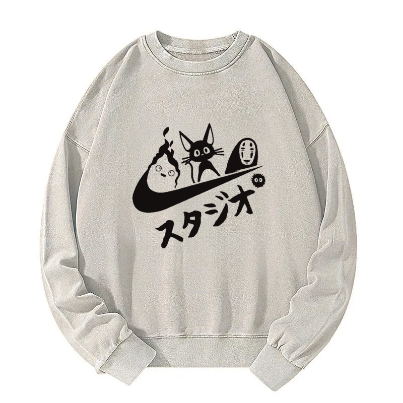Tokyoviva Black Cat Ghibli Vintage Washed Sweatshirt