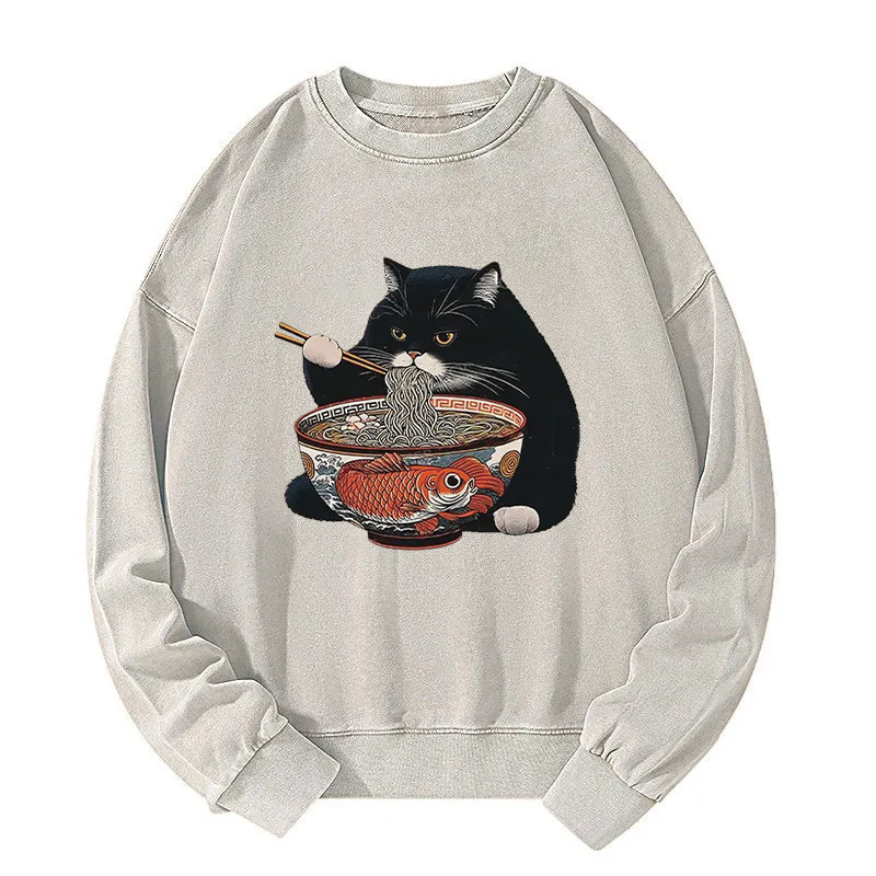 Tokyoviva Fat Cat Eating Ramen Washed Sweatshirt