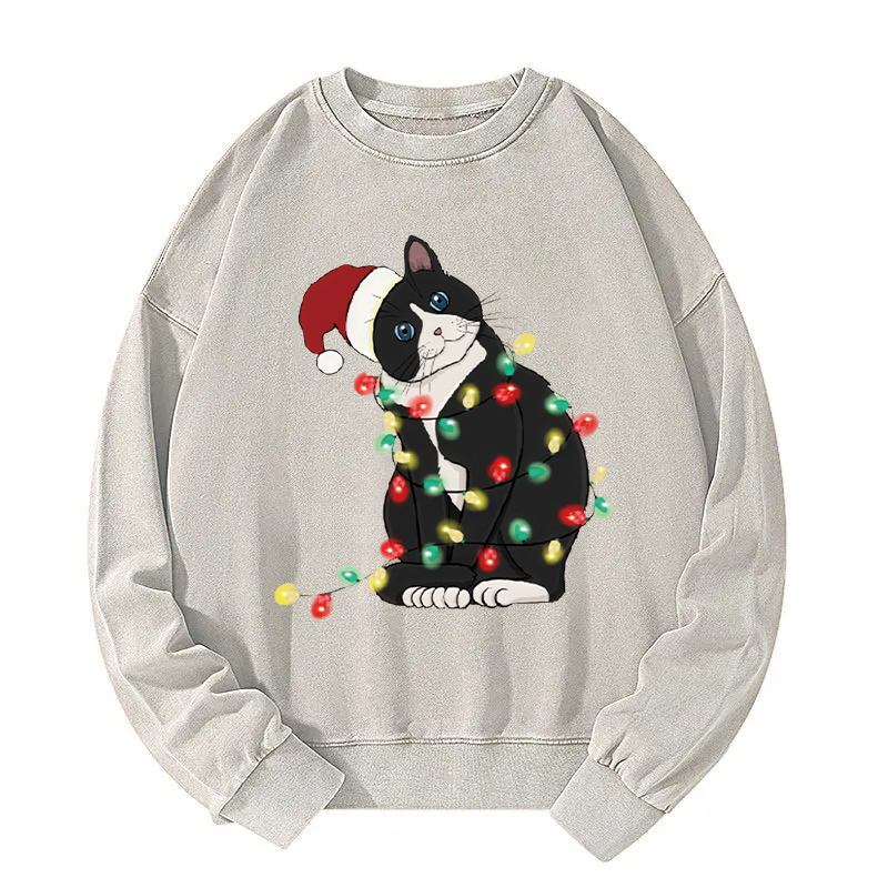 Tokyoviva Funny Christmas Lights Cat Washed Sweatshirt