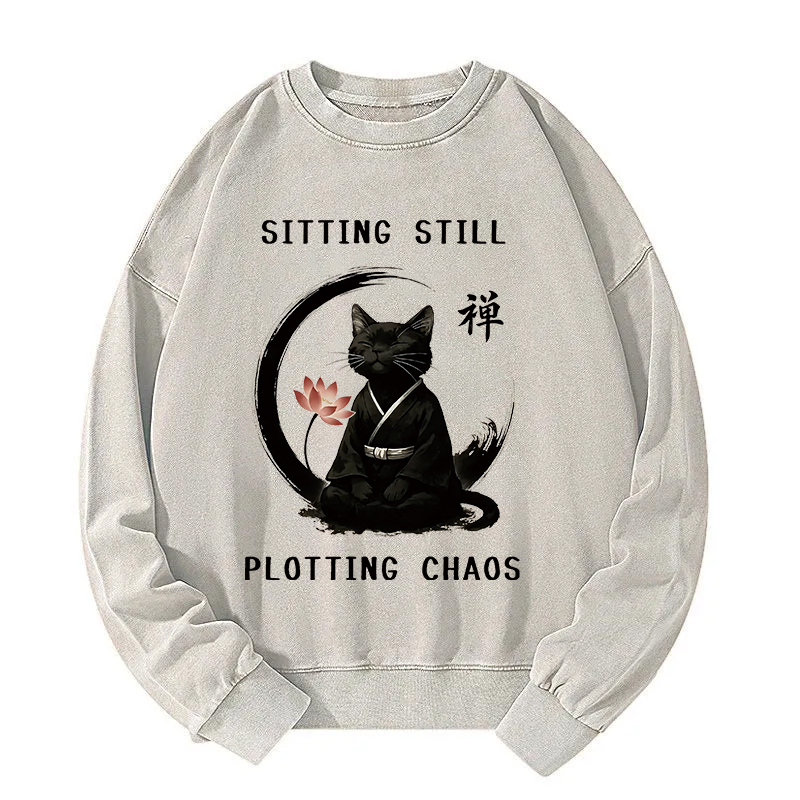 Tokyoviva Sitting Calming Zen Cat Washed Sweatshirt
